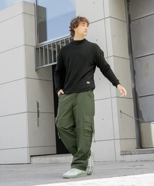 PANTALON BAGGY CARGO GABARDINA NEGRO